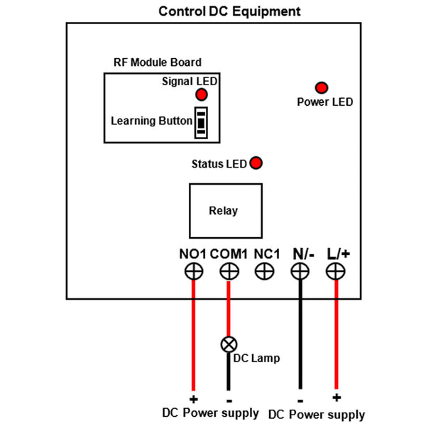 5) Connect the positive pole of DC lamp to terminal "COM" of the receiver.