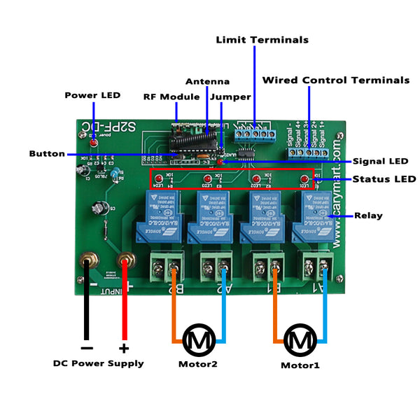 With limit control terminals: You can connect limit switches or sensors to stop the motor.