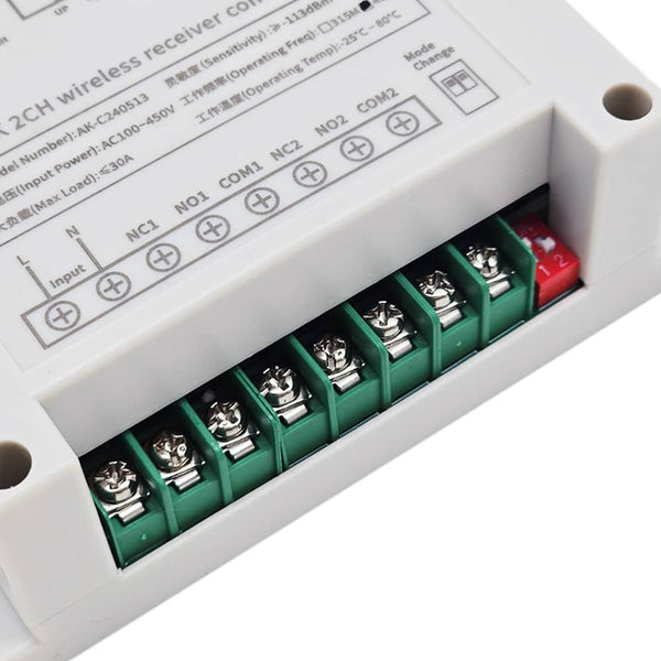Notice: The receiver is relay output, not DC/AC power output. Initial state of relay output terminals: Terminals <NO> and <COM> are Normally Open; Terminals <NC> and <COM> are Normally Closed.