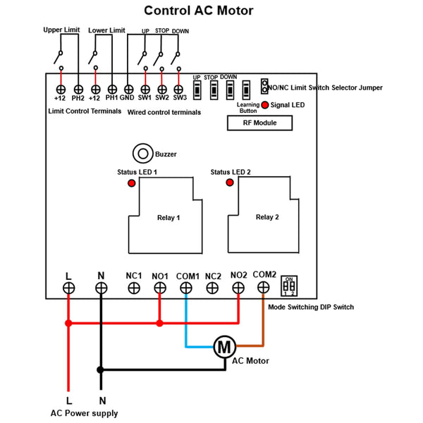 When the limit switch terminals of the receiver are set to normally closed type, if you are not using the limit switch, you need to short-circuit the upper and lower limit switch terminals respectively.
