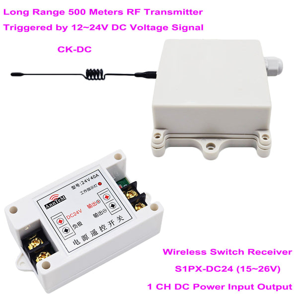 It can long range wireless remote control DC equipments, such as illumination, lamps, LED lights, pumps, motors, solenoid valves, electric locks, etc.