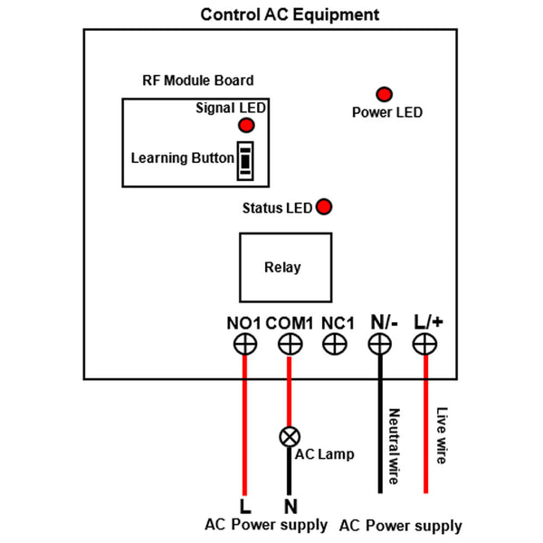 It can long range wireless remote control DC or AC equipments, such as illumination, lamps, LED lights, pumps, motors, solenoid valves, electric locks, etc.